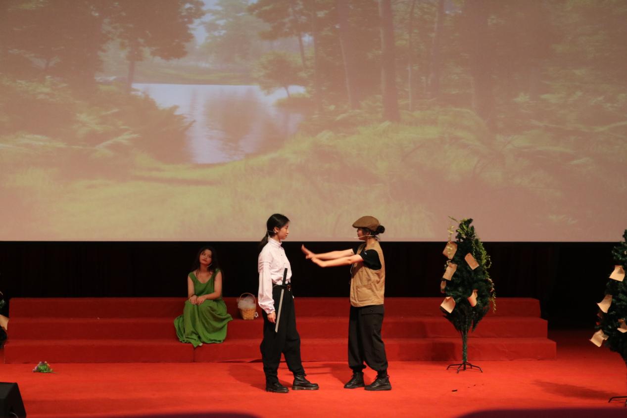 皇冠网址 传承着浓厚的文化底蕴。庆典上,同学们把《欧美戏剧》课堂上学到的经典莎剧片段《皆大欢喜》(As you like it)搬上舞台,向开创了皇冠网址 戏剧传统的孙建秋教授致敬。演员们精湛的演技,流畅的表演,赢得阵阵掌声与喝彩。