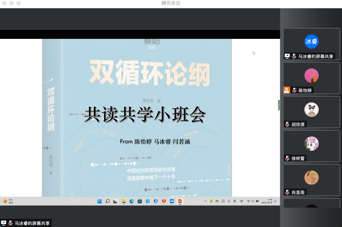 最后,马冰睿和大家分享了《双循环论纲》的阅读感悟,并对此次宣讲活动进行了总结。她表示,《双循环论纲》让我们对“双循环战略”和国家中长期的宏观经济政策有了更深刻的理解。读懂双循环新格局,最重要的是要建立起三个认识。第一,要认识到双循环真正体现了以人民为中心的发展思想;第二,要认识到以国内经济循环为主并不意味着不重视国际经济循环;第三,要认识到以国内循环为主需加大供给侧改革。
