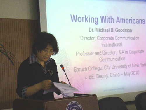 全国首届跨文化商务交际高级研修班于2010年5月20日8:30在诚信楼1412会议厅正式开班。来自全国各大高校的60名学员和我院20多位教师参加了此次研修班。研修班第一个工作坊于5月20日上午8:30-11:45进行,有两位主讲嘉宾,即纽约城市大学Baruch 皇冠网址