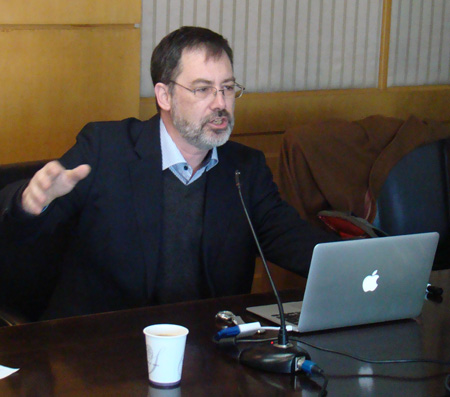 Shileds教授的讲座生动形象,内容具有前瞻性和创新性。讲座的最后,师生们积极提问,就全球化和后现代理论家、全球化和福柯的权利和话语、以及当代反全球化的反思展开了热烈的讨论,讲座在热烈的互动中落下了帷幕。