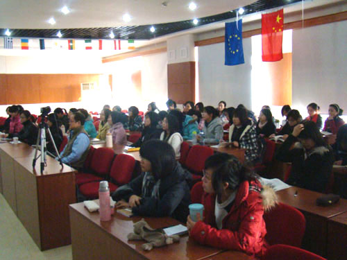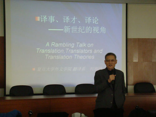 的师生做了一堂精彩的讲座,题目为:“译事、译才、译论——新世纪的视角”。何教授在讲座中分三部分(译事、译才、译论)阐述了历史上和现阶段翻译理论和翻译实践在国内外的发展,在对译才的培养方面,他特别强调了不能忽视其国学功底的强化。在互动环节中,对于同学们的踊跃提问,何教授都一一给予了全面、中肯的答复。