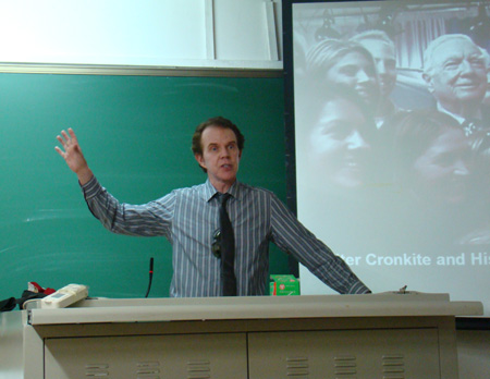 紧接着,Andrew教授向大家介绍了当前财经新闻领域的记者需要哪些素质,并详细介绍了当前财经新闻领域的热点问题,例如欧洲的金融危机状况,美国经济疲软的相关原因等等,从新闻专业主义的角度向大家展示了作为财经新闻行业的职业从事人员,应该具备高度的新闻敏感度和对事件真相的执着度,以及非常重要的财经知识储备。