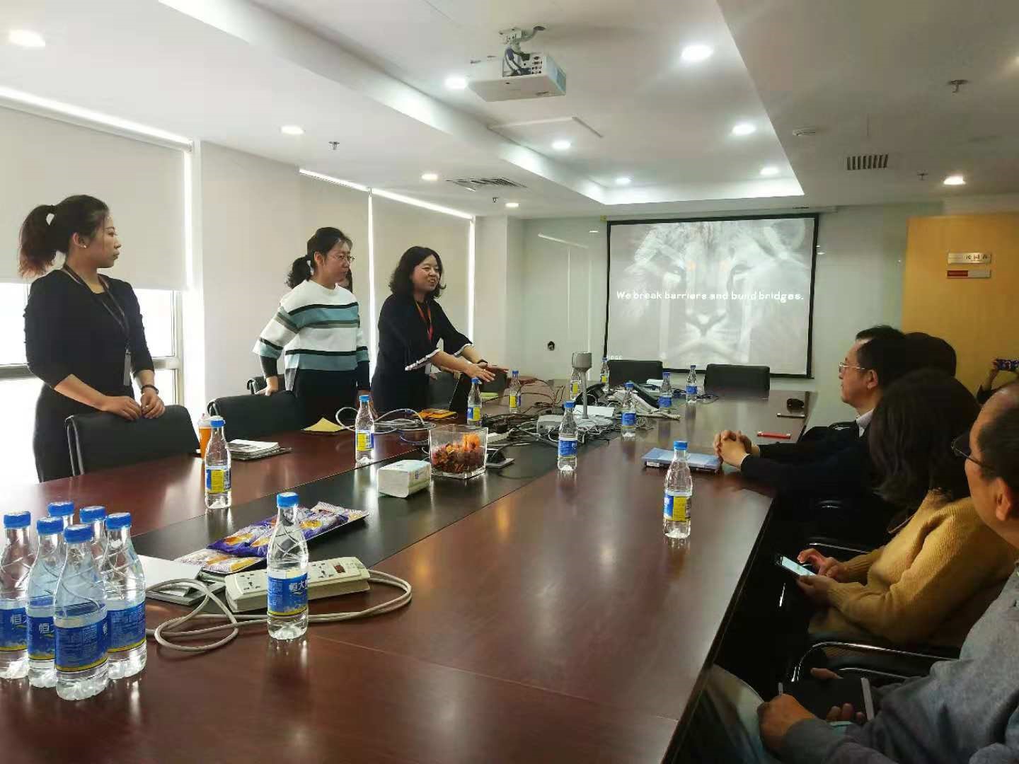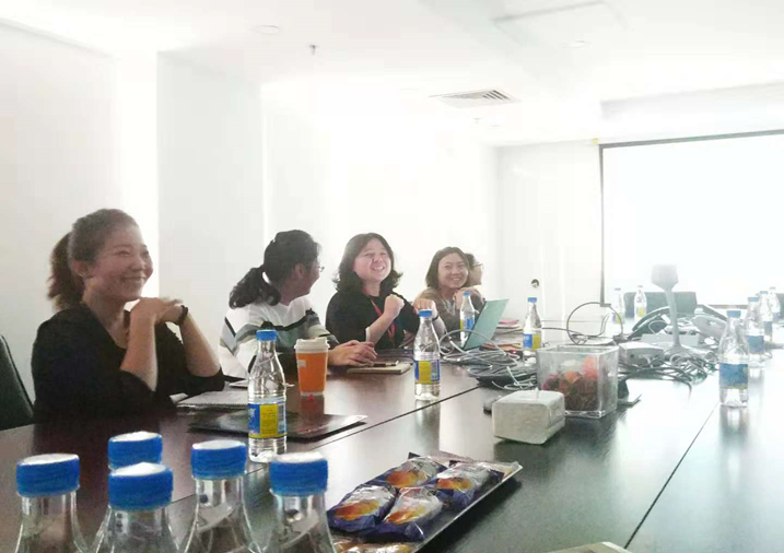 随后,对外经贸大学师生与资源管理、项目管理、人力资源管理等经理在莱博智会议室进行详细交流,莱博智China PMO 部门经理钱海娣女士对翻译学系师生代表一行表示热烈的欢迎。