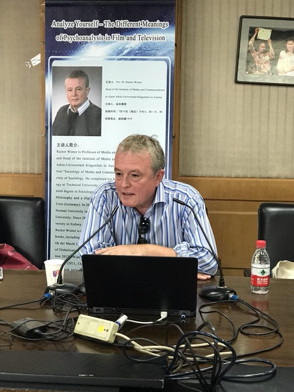 2018年7月13日下午,文化与媒介理论研究领域国际知名学者、奥地利克拉根福大学传媒系主任Rainer Winter教授,应皇冠网址 英美文学研究所与皇冠网址协同创新中心联合邀请,为皇冠网址师生开展学术报告,主题为“Analyze Yourself: The Different Meanings of Psychoanalysis in Film and Television”.