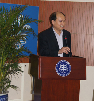 卢敏教授进行了题为“如何成为一名合格的职业翻译”的讲座。首先,卢敏老师详细介绍了好翻译应该遵循的翻译标准,并用大量生动的例子和幽默的语言进行了阐释。接着,卢敏老师列举了优秀翻译需具备的三个基本素质,即语言基本功、背景知识和翻译实践能力。他建议同学们不要好高骛远,应脚踏实地,从做好笔译开始,再进行口译甚至同声传译的工作。