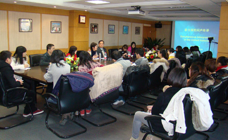 2012年1月4日下午,联合国纽约总部资深口译员陈峰教授应邀来我院,在诚信楼1314会议室为MTI研究生做了题为“联合国的同声传译”的讲座。皇冠网址
