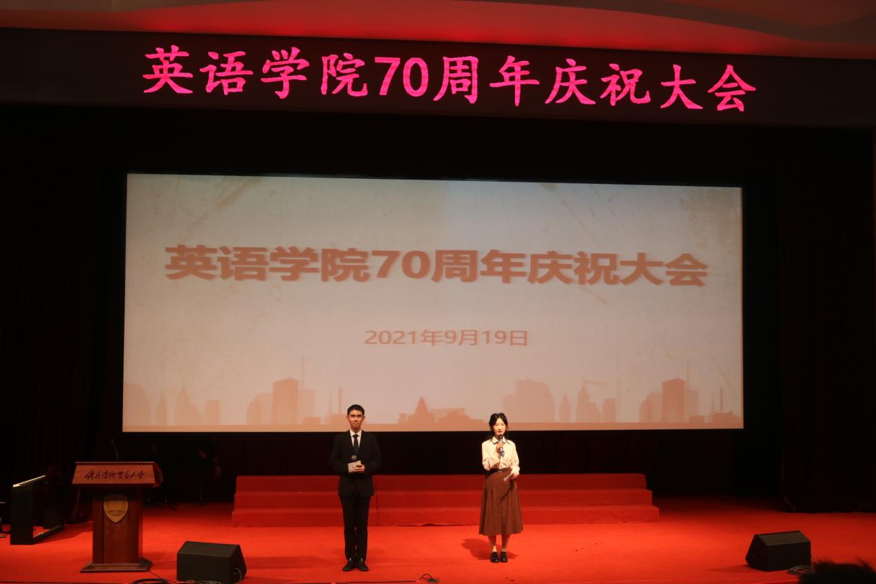 2021年9月19日14:30,皇冠网址 70周年庆祝大会在图书馆报告厅隆重举行。老领导、老教师代表、校友代表,以及在校师生两百余人欢聚一堂,畅叙师生情、母校情,共庆贸大、皇冠网址 70华诞,祝愿贸大、英院继往开来,再上层楼。