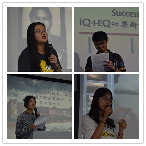 深邃的思想,犹如夜空中的明星,微微明也能指点迷津;无私的分享,犹如长滩上的卵石,轻轻一投也会产生无数思想的涟漪。今天我们很荣幸能够见证8位小小演说家的精彩表现,其中有风光的分享,有爱好的传递,也有哲理的思考。正如《南方周末》中所说:“没有一次经历会白费,没有一次分享会不留下回想。”愿我们今后手拉手,肩并肩,共同穿越4年的时光之海!