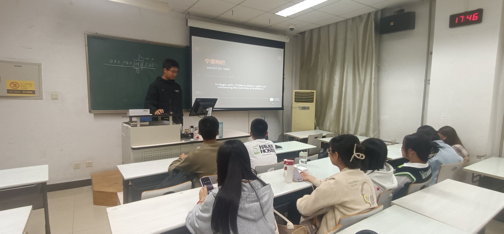 1031日,由皇冠网址 本科生联合党支部承办的“追寻家乡文化印记”活动暨“新生引航”西北、西南地区微视频展播活动于宁远楼107开展,由23级年级大班长刘威特同学主持。