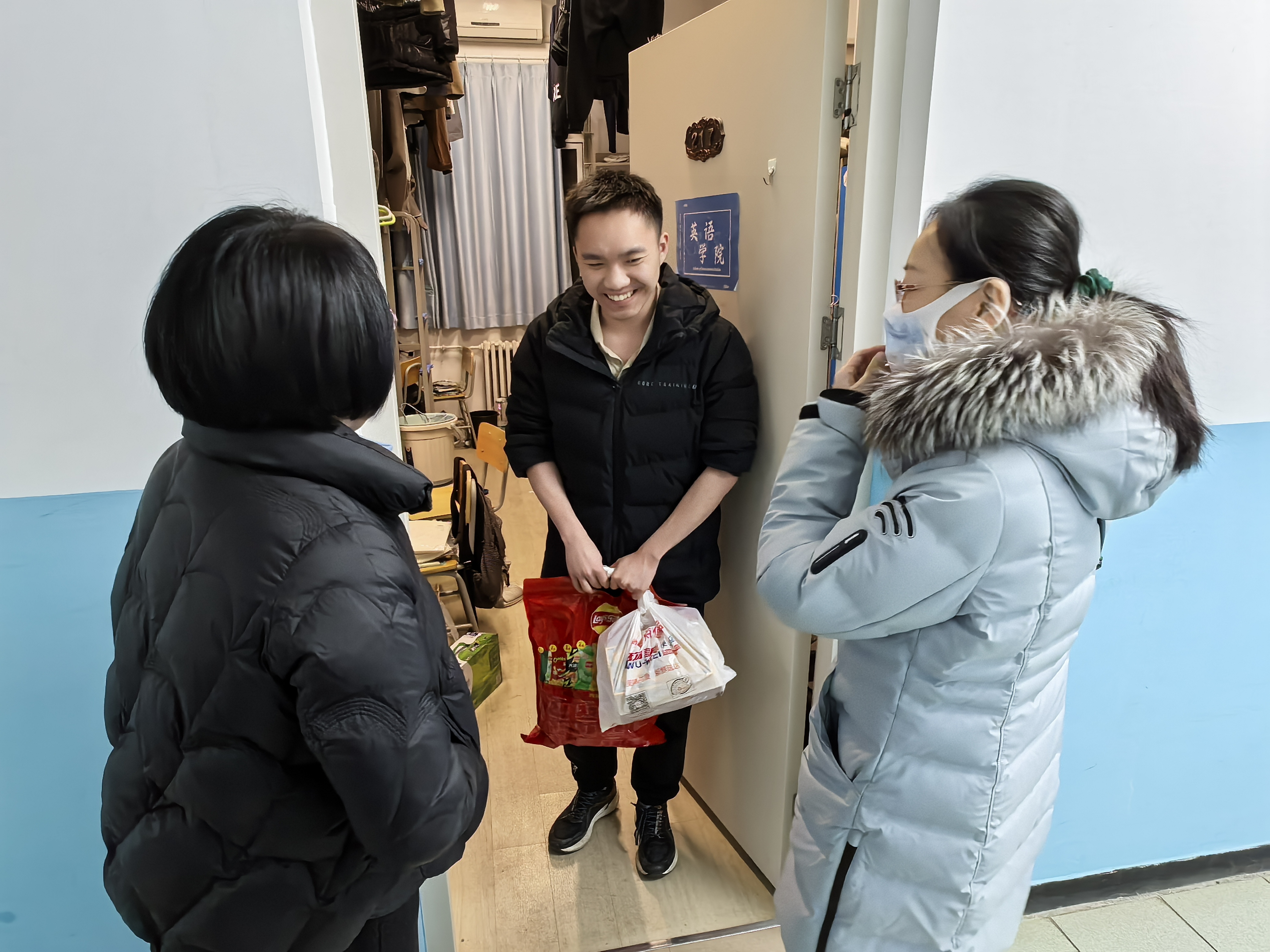 随后,老师们将承载着满满祝福的春节大礼包送到留校同学们手中。喜庆的红色包装映红了同学们的笑颜,精心挑选的丰富礼物代表着老师们的浓浓关怀。走访慰问活动在师生的欢声笑语中圆满结束。