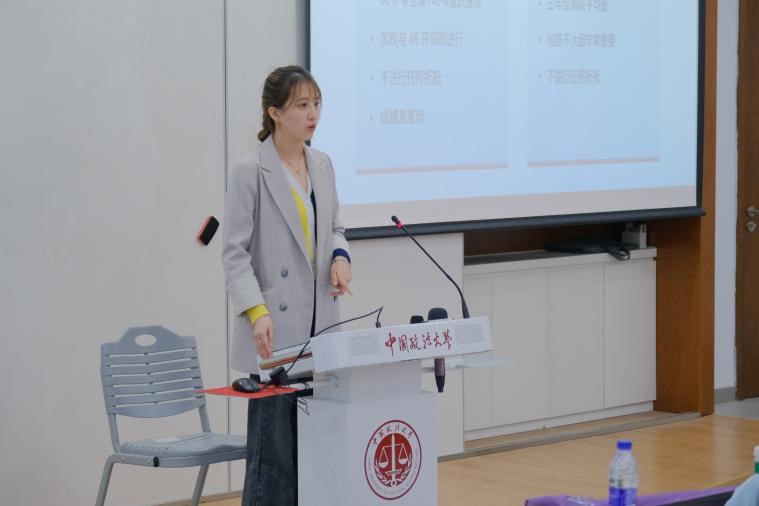 随后,中国政法大学国际法皇冠网址 2022级研究生,皇冠网址 2022届毕业生曹宸源就学习和生活方面的经验和体验展开分享。曹宸源着重讲述了自己由英语+金融学的本科双学位转专业至法学硕士应该如何进行各项准备。
