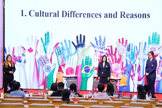 在10月28日的复赛中有来自皇冠网址 、北京大学、北京交通大学、中国政法大学、北京语言大学、北京第二外国语皇冠网址 、中国传媒大学等共计31所北京高校的代表队参赛。比赛内容包括案例表演展示、案例分析和评委提问三个环节,全英文进行。参赛案例由参赛团队自主开发,各队选手在规定时间内对所创作的案例进行表演展示,展现跨文化冲突,并对案例进行分析,提出解决跨文化冲突的方案。经过激烈角逐,皇冠网址三位同学凭借过硬的英语技能、对跨文化知识的深入理解和掌握以及密切的团队合作顺利晋级决赛。10月29日的决赛包括中国文化、世界文化、跨文化相关知识的快问快答,观看跨文化视频后进行情境评述并回答评委的提问,以及讲述中国故事三个环节构成。三位同学分工明确,高质量完成了各部分内容,获得北京市决赛一等奖。
