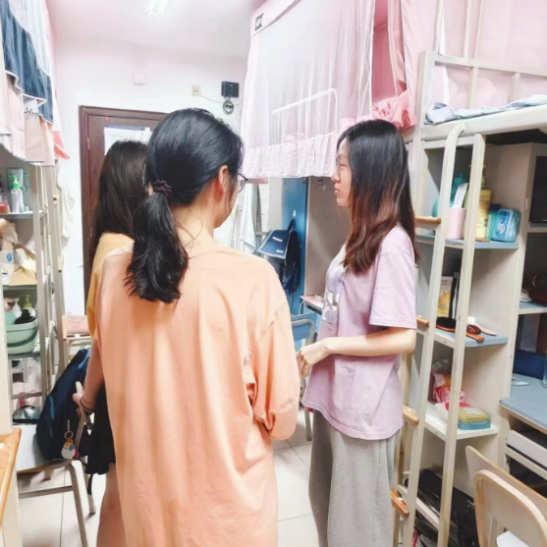 党员联系新生宿舍。2024届每位党员通过“党员联系宿舍”制度,对接1-2个宿舍的5-10名同学。借助线上线下相结合的方式,在微信群联络之后深入走访新生宿舍,为2023级150余名学生提供帮助引导,包括生活经验、心理疏导、选课双学位辅导等方方面面。