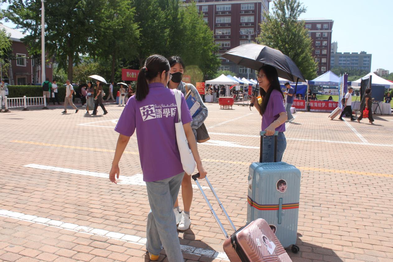 迎新工作从旭日东升持续到了夕阳西下,虽然汗水浸透衣衫,但在场的工作人员依然饱含热情、耐心服务,在他们的付出和坚守下,迎新工作井然有序。