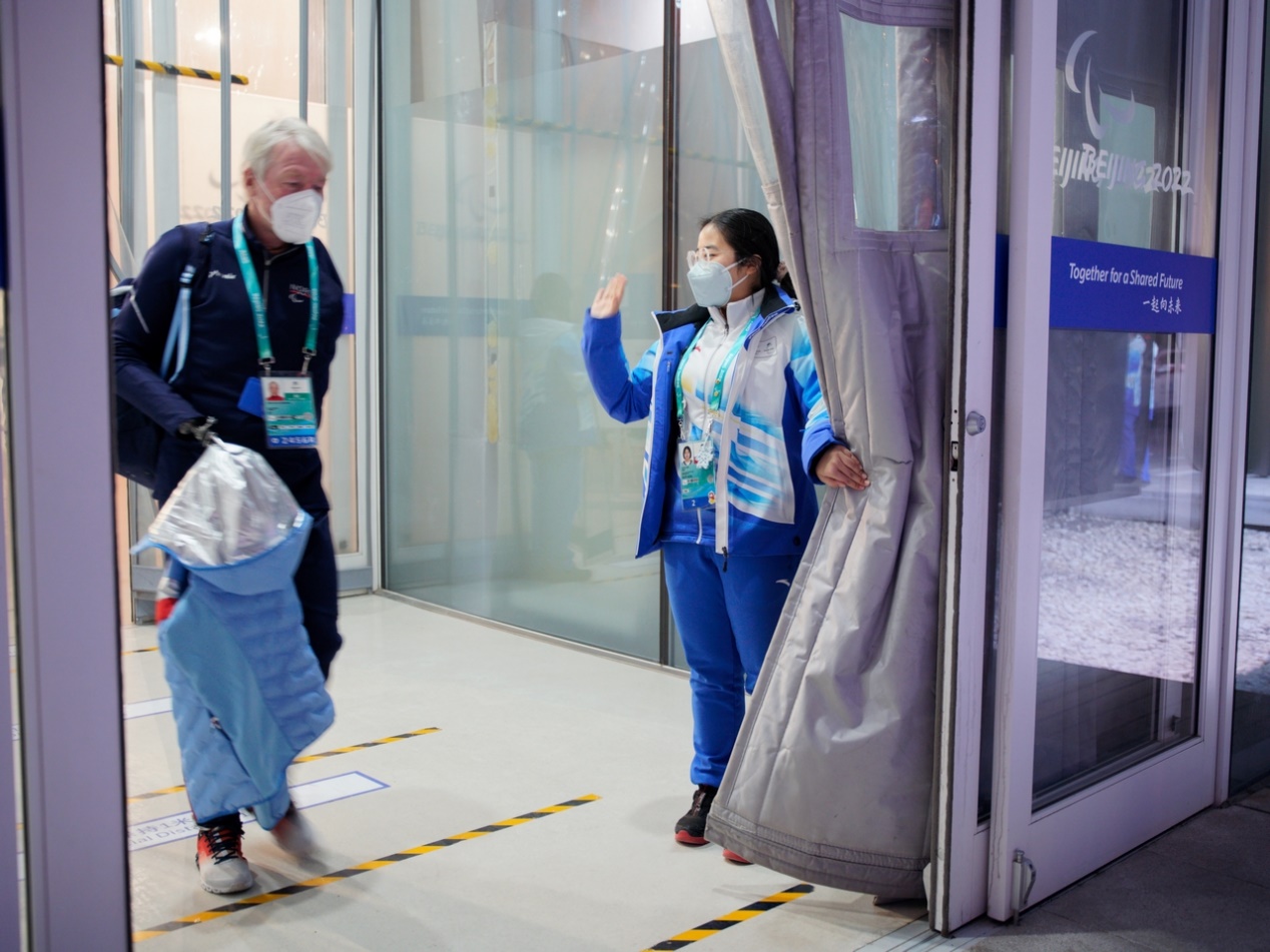 由于“冰立方”内为冬残奥会冰壶项目场地,面向有腿部障碍的运动员。因此尽管各岗位大致职责相较于冬奥会没有过多变化,但为了服务残奥会运动员的特殊需求,志愿者们也分配到了一些新任务。