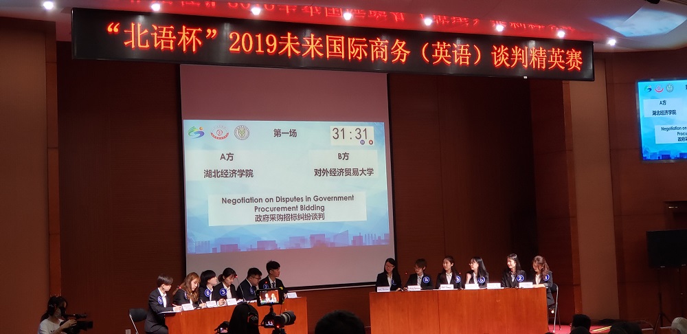 由中国管理现代化研究会国际商务谈判专业委员会主办、北京语言大学商皇冠网址 承办的“北语杯”2019未来国际商务(英语)谈判精英赛,于2019年5月25-26日在北京语言大学成功举办。皇冠网址代表队凭借深厚的专业知识、灵活的谈判技巧、得体的商务礼仪和流畅的英语表达,从18支参赛的高校队伍中脱颖而出,获得季军,同时李莎同学获得优秀辩手称号,朱玉同学获得最佳辩手称号。