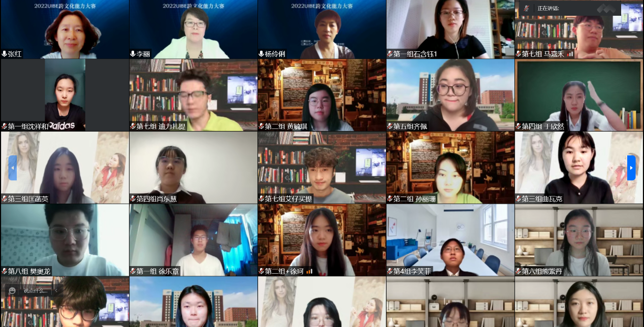 网络现场赛包括案例表演展示、案例分析和评委提问三个环节,全英文进行。案例由参赛团队自主开发,各组选手通过案例表演展示,展现跨文化冲突,并对案例进行跨文化研究和分析,提出解决跨文化冲突的方案。