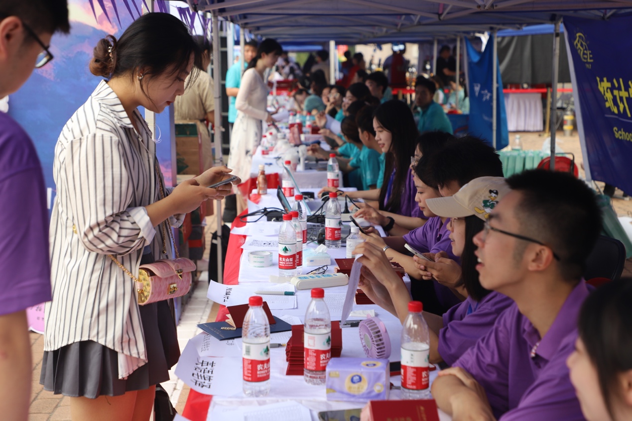迎新工作从旭日东升持续到了夕阳西下。虽然汗水浸透衣衫,但在场的工作人员依然饱含热情、耐心服务。在他们的付出和坚守下,迎新工作划下了完美的句号。