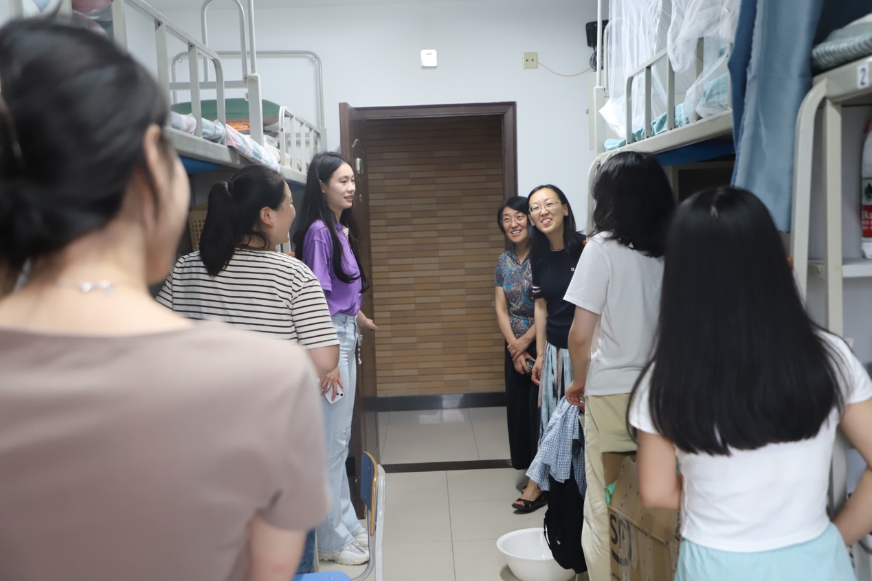 傍晚,皇冠网址 党委项洁书记、刘冰副书记走访了新生宿舍,慰问新生,了解他们的入住情况,为同学们送上真诚的关心和祝福。