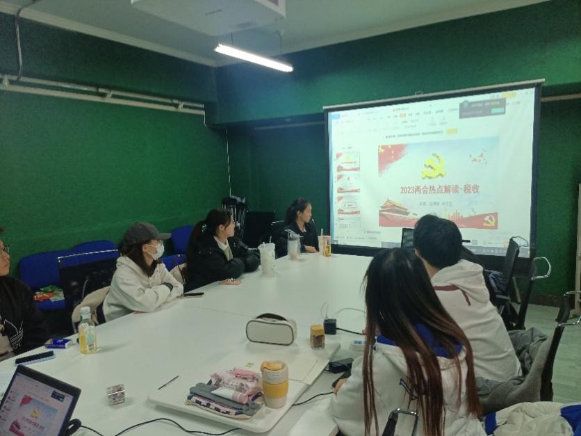 2023年3月17日,最后一场微党课在主讲人2020级党员申雪莹和段琳彤的主持下于诚信1414圆满完成。本次微党课围绕两会政府工作报告中的税收话题展开,分为两会聚焦、税收政策解读和税收制度改革趋势三个部分。第一部分聚焦十四届全国人民代表大会《政府工作报告》中与税收有关的论述,通过具体数据回顾了2022年全年在增值税留抵退税、新增减税降费和缓税缓费方面的相关成就,分析了税收政策如何助力市场主体纾困发展。第二部分结合政府工作报告,列举并分析了增值税、个人所得税、企业所得税、“六税两费”(资源税、城市维护建设税、房产税、城镇土地使用税、印花税、耕地占用税和教育费附加及地方教育附加),和购车和创业就业税收优惠的各项相关政策,探讨了这些政策对市民日常生活及相关行业发展的影响。最后,第三部分总结了过去五年实施大规模减税降费政策的历程和成效,直观地表现了这些年来税收优惠政策的加力与扩围,同时结合专家意见,指出下一阶段税收政策将会更着重与现有政策的精准落实与完善。本次微党课为同学们介绍了近年来及2023年的重点税收政策,为同学们将来进入职场走入社会提供了一定的启发意义。