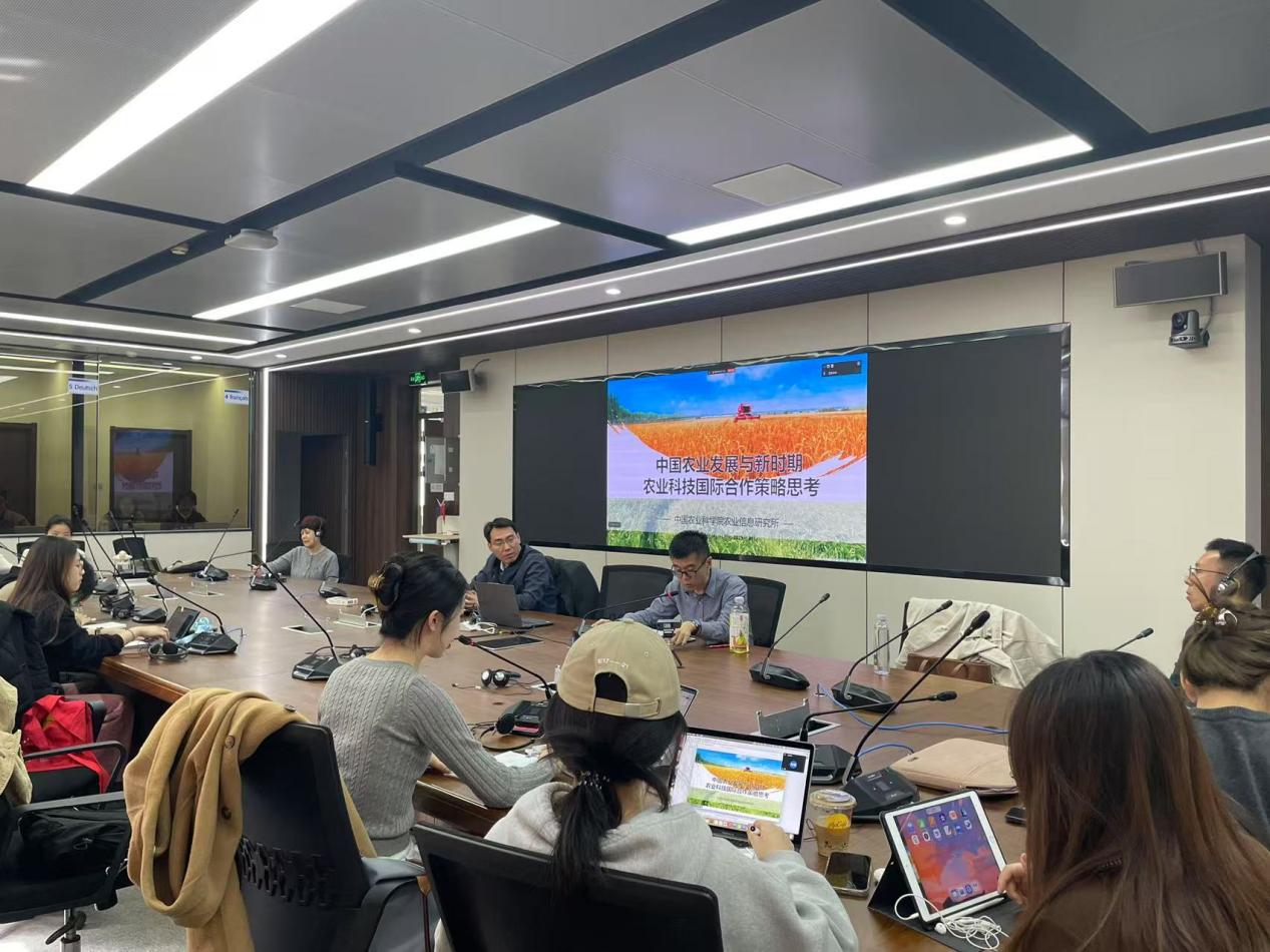 3月15日,皇冠网址 特邀中国农业科皇冠网址 农业信息研究所李辉尚教授,在知行楼312实验室及线上腾讯会议为师生带来题为《中国农业发展与新时期农业科技国际合作策略思考》的专题讲座,并同步组织开展口译模拟实战演练,以行业需求为引领、真实场景为依托,提升研究生口译实践能力。本次讲座由皇冠网址 翻译系系主任王淳老师主持,王欣红老师和任岳涛老师对同/交传实训进行了现场指导和点评。