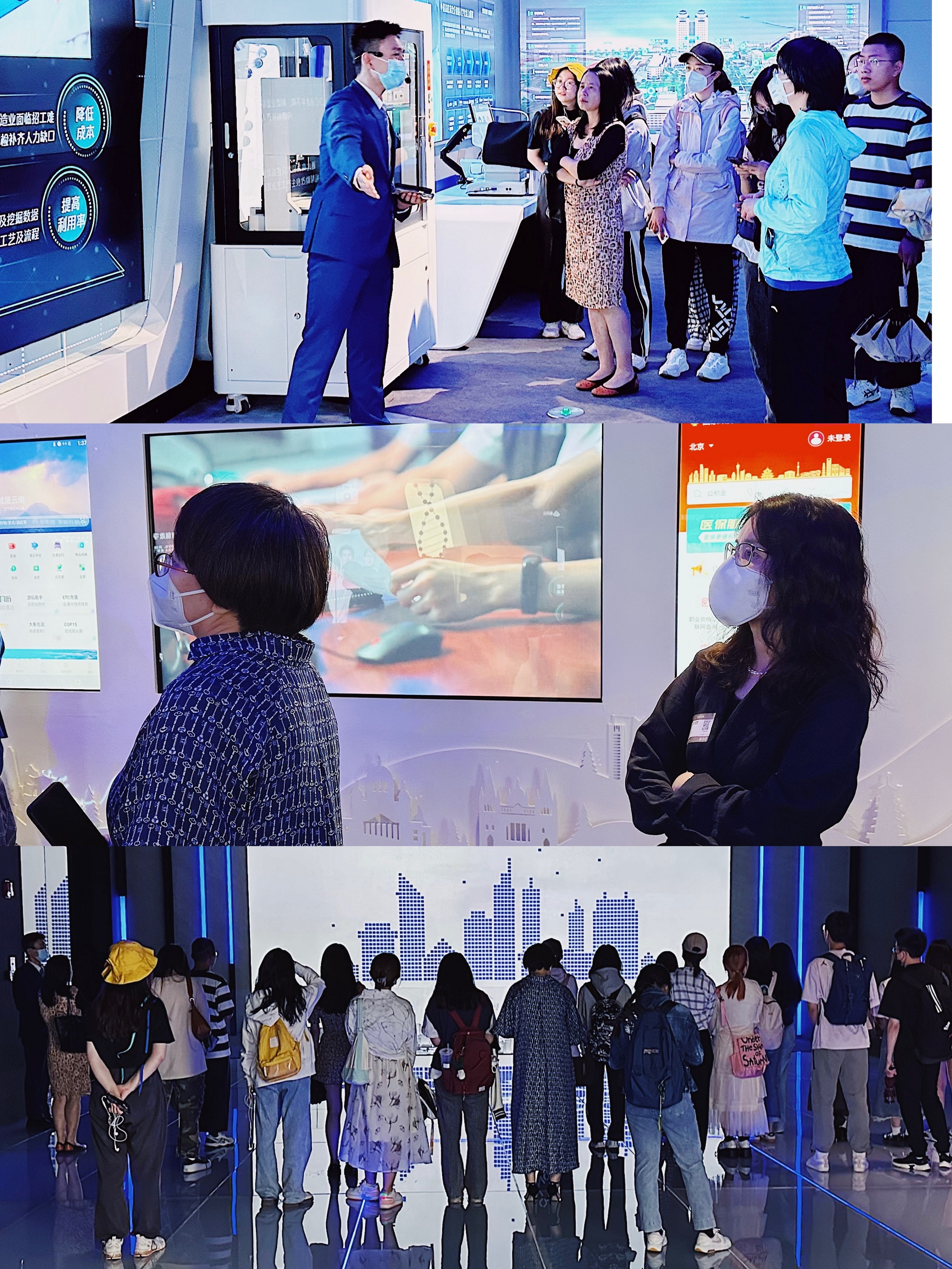 师生首先参观了腾讯展厅。了解腾讯云、政务平台、智慧校园、以及金融服务等产业互联网业务,体验腾讯企业在影视、新闻、电竞、公益事业等消费互联网领域的发展。