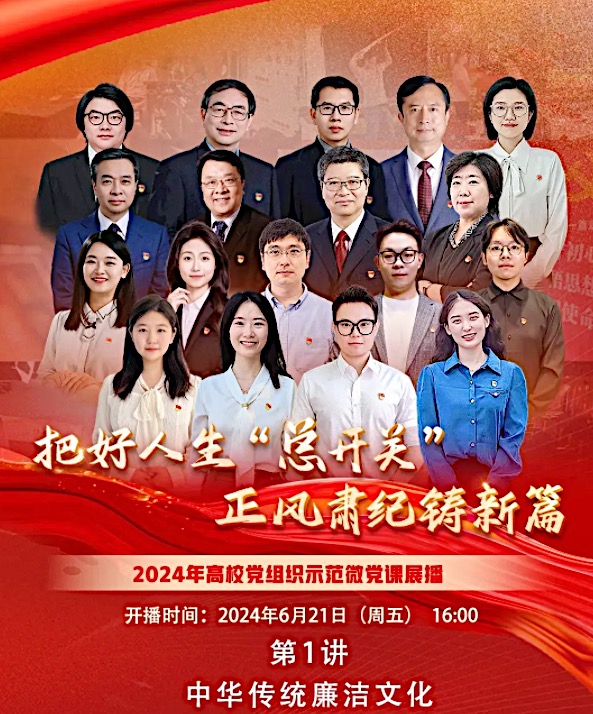 2024年高校党组织示范微党课展播以“把好人生‘总开关’,正风肃纪铸新篇”为主题,编发多所高校的精彩党课,交流展示高校党纪学习教育成果。第一期《中华传统廉洁文化》由中国人民大学、北京师范大学、华东政法大学等三所高校的主要领导、知名学者、教师及学生党员代表等共同讲述中华传统廉洁文化的精髓和深刻内涵,赓续廉洁文脉、学习廉洁理论、激发廉洁担当。