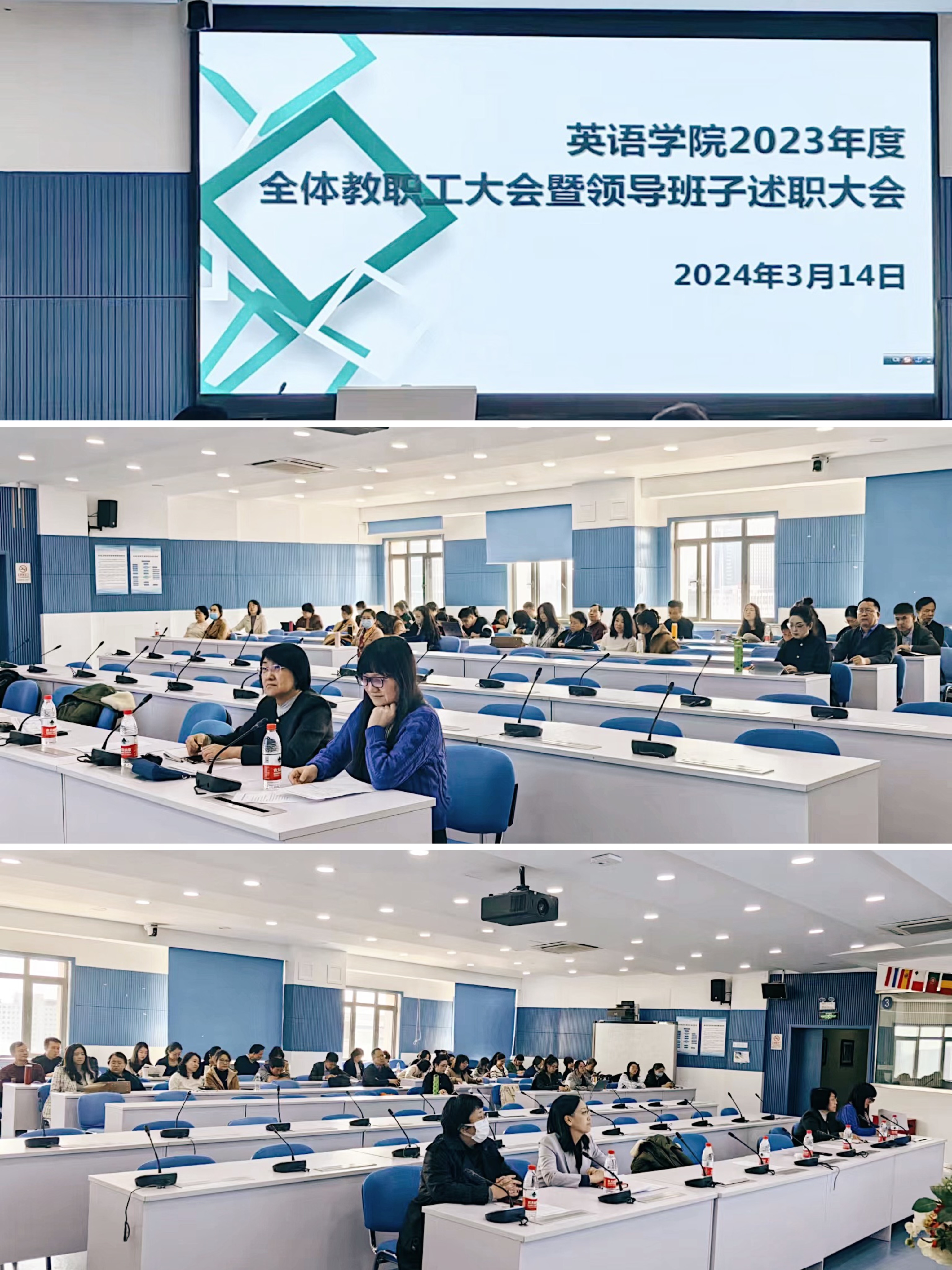 2024年3月14日下午,皇冠网址 在诚信楼1412会议室召开2023年度全体教职工大会暨领导班子述职大会。会议由分工会主席金冰主持,全体教职工参加。金融皇冠网址 副处级组织员阎丽鸿受组织部委派列席会议。