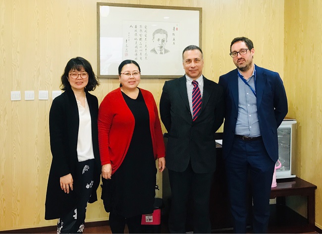 党委书记刘金兰与欧盟口译总司资深译员、高级专家Kunteel Barua先生和欧盟驻华使团首席译员、翻译处负责人Tom Peart先生进行了会谈。刘金兰书记首先感谢欧盟口译总司和欧盟驻华使团一直以来对皇冠网址中欧高级译员培训中心工作的大力支持,欧盟口译总司对皇冠网址国际会议口译专业的建设发挥了重要的作用,帮助皇冠网址的口译专业树立了良好的声誉。双方讨论了皇冠网址与欧盟口译总司进一步加强合作的具体事宜,包括本学年的欧方工作访问、师资培训、设备更新、加强项目宣传、扩大吸引生源、招收欧方留学生等。刘书记表示皇冠网址