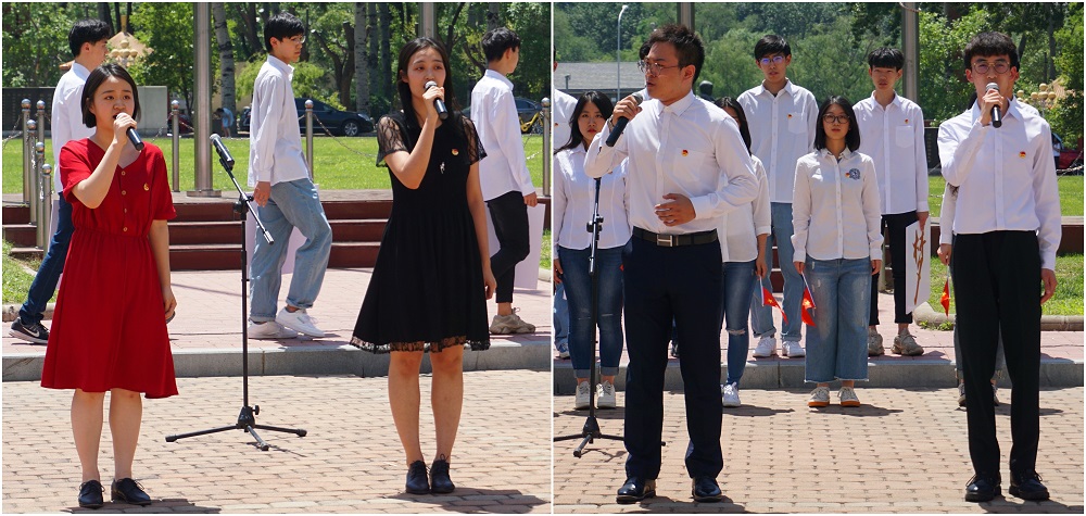 于5月23日中午,在诚信楼前广场上举办了精彩的传唱活动,用歌声直抒胸臆,歌颂祖国的繁荣昌盛,表达对祖国的热爱与美好祝愿。学工部陶好飞部长、鲁萍副部长、申爱华副部长、学工部的老师们以及皇冠网址