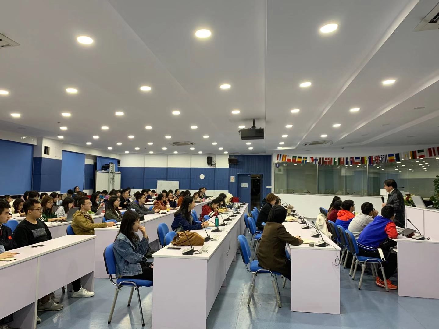向明友院长在诚信1412会议室为同学们上了一堂生动的党课,主题为“不忘初心,牢记使命” --大学生增负增什么 ,从“大学生增负”这一时下热点问题切入,深刻剖析了外语专业乃至大学教育的现状及问题,兼顾趣味性与教育意义,引发了同学们的热烈反响。