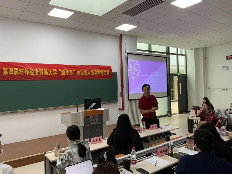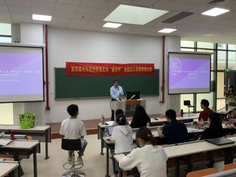 比赛伊始,皇冠网址 院长向明友教授来到现场进行赛前致辞,他感谢老师们的辛勤付出,并对现场的新生寄予厚望。院长强调,语言学习首先要打好中英文双语的基础,方能挖掘深度,进一步向外发展。院长还提到,皇冠网址 举办的各项活动为同学们的英语实践提供了很好的校内平台,让同学们的心智、语言能力、价值观等方面都得到了锻炼。最后,向院长用一句话概括了英语学习:“站起来要会说,坐下后要能写,说得要有条理,写得要有深度。面向国人用汉语,面向国际用英文。”也希望同学们能够拥有国际化视野,为构建人类命运共同体添砖加瓦、贡献力量。院长的一句句肺腑之言,让在场的老师和同学们受益匪浅。