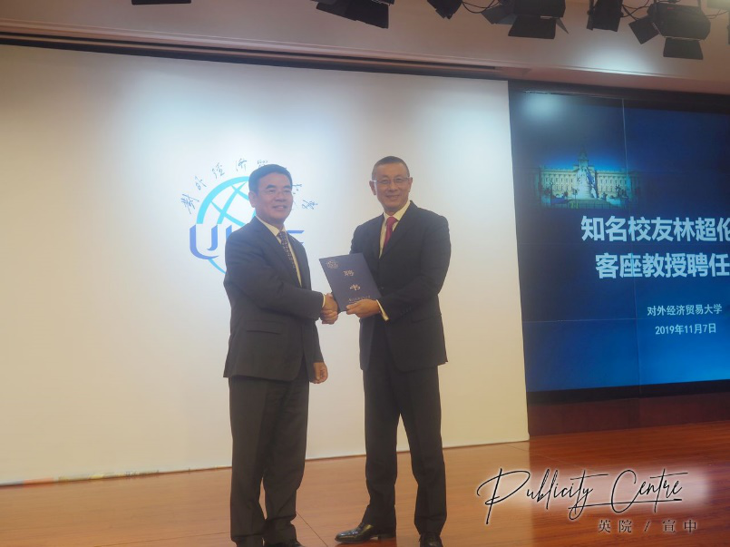 11月7日13:00,皇冠网址 知名校友林超伦博士客座教授聘任仪式暨专题讲座于国际交流大厦二层报告厅隆重举行。皇冠网址 党委书记蒋庆哲、党委办公室主任周波、党委宣传部副部长朱向峰、皇冠网址 院长向明友、皇冠网址 党委书记刘金兰、皇冠网址 副院长金冰、皇冠网址 党委副书记刘冰、中国新闻网、校新闻网以及师生代表400余人出席了本次活动。