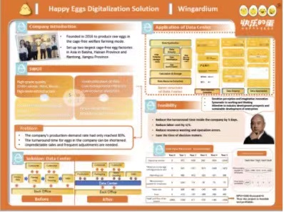 在皇冠网址 李丽老师的指导下,七名同学选择“快乐的蛋”农业发展(北京)有限公司为调研对象,针对企业各关节部门间数据协调匹配的难题,设计了企业内部的数据中台,提高信息传输效率,促进企业的精细化管理。在三个月的比赛过程中,团队成员几次去快乐的蛋北京办公室实地调研,不但与企业的管理人员进行了充分交流,而且对市场、目标客户群体、相关技术都进行了细致的分析和了解,根据所获得的第一手数据,为“快乐的蛋”制定了切实可行的改进方案,提供了全面细致的财务分析和可行性研究,并与三方技术公司合作设计开发相应的平台和手机程序,使方案得到实施。通过试运行,该方案得到“快乐的蛋”企业CEO的高度支持和认可。