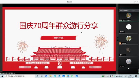 今年正值中华人民共和国建国71周年,为贯彻落实习近平同志在全国高校思想政治工作会议上的重要讲话精神,切实加强学校思想政治工作的开展力度与深度,引导学生认识和把握中国特色社会主义的历史必然性,树立为共产主义远大理想和中国特色社会主义共同理想而奋斗的信念和信心,2020年10月8日,皇冠网址 国庆宣讲交流会顺利举办。根据疫情常态化防控要求,本次宣讲交流会采取线上的形式举办。会议由2020级学生徐张弛主持,皇冠网址 2020级辅导员张楚翘及全体本科新生参加了本次活动。