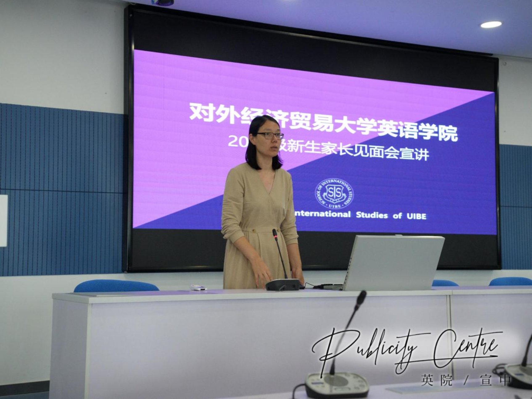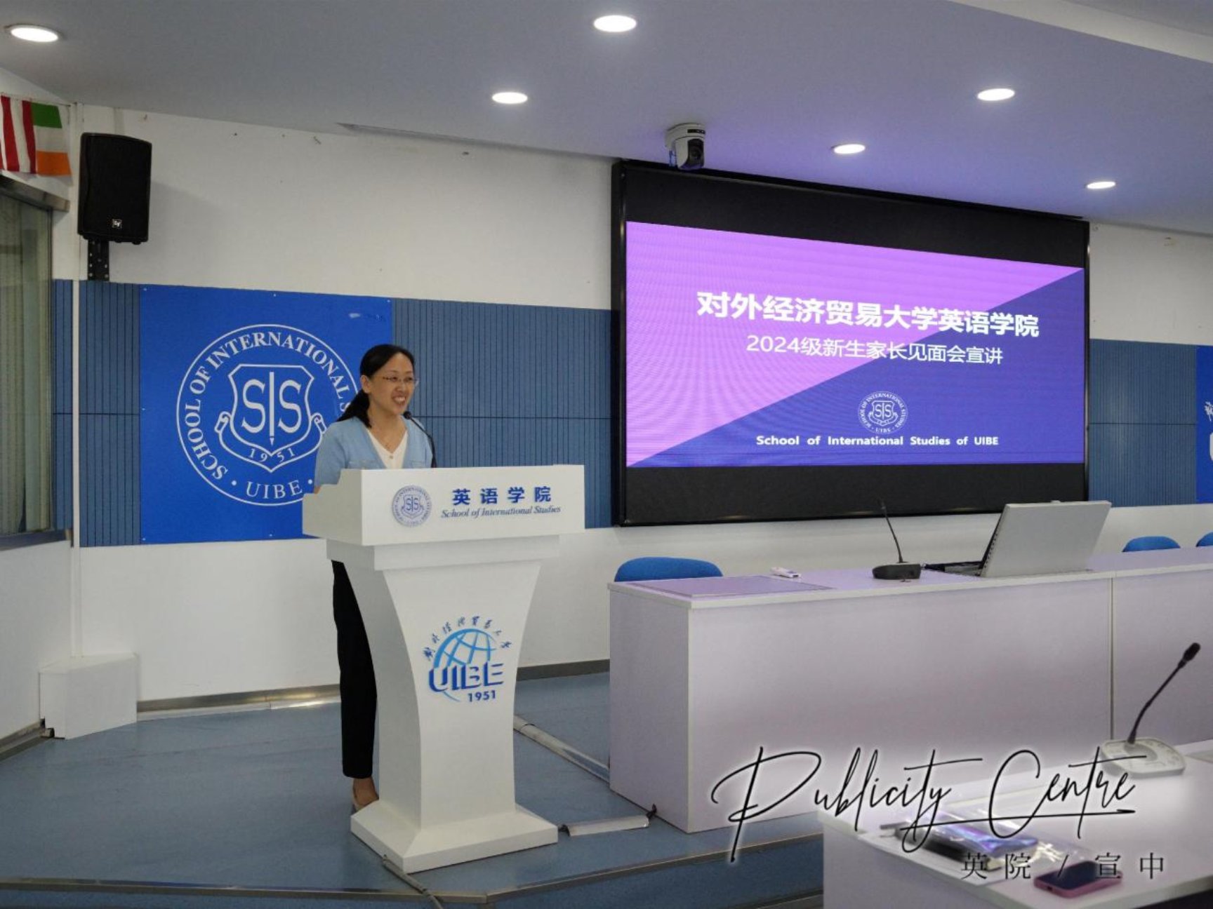 之后是赵丹彤副院长讲话。她从工作的实际出发,就会前收集到的人才培养相关的问题进行讲解。讲解的内容包括大类分流、双学士学位以及辅修等学习制度。她也提到了皇冠网址 为了提升学生英语水平所采取的一系列教学方法,同时建议各位家长引导同学及时关注,合理利用,以便新生尽快适应英语专业学习生活。