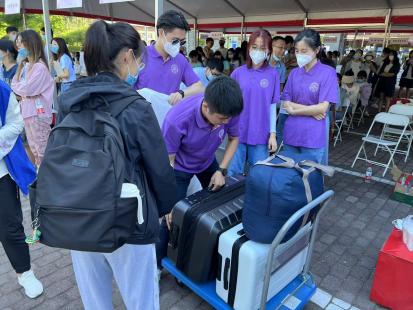 由于疫情防控需要,保证校园安全,2022年新生报到采取家长不陪同进入学校、学生入校前查验健康宝、核酸和测体温等措施。为了解决新生行李搬运等的困难,皇冠网址 本科生联合党支部招募近30名党员、发展对象和积极分子等协助新生运送行李、协助新生报到,保障皇冠网址 迎新工作有序地进行。