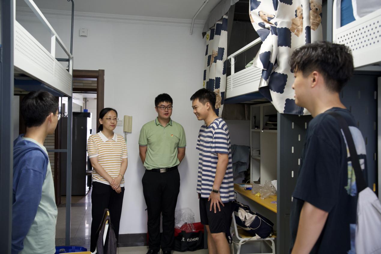 为帮助新生适应新的居住环境与宿舍生活,6日下午16时,皇冠网址 党委副书记刘冰、皇冠网址 副院长陈功、研究生辅导员苏越阳深入宿舍与新生们亲切交流,了解他们的本科学习与家乡情况,询问是否适应新的环境,解决同学们生活上的疑虑,并对同学们表达期望之情。同学们对老师的慰问表示感谢,并表达了对贸大环境的赞许与未来努力学习实践的决心。
