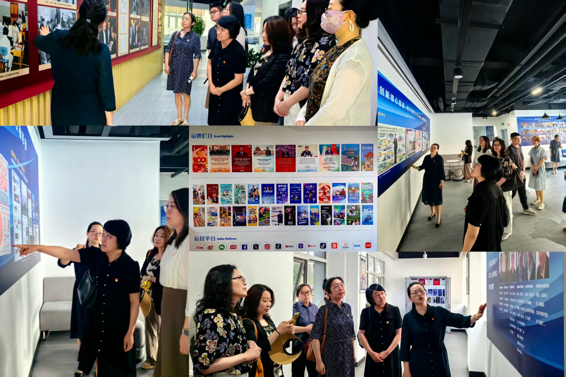 上午10时,在中国日报社办公室秘书处副处长郭书含的引导下,皇冠网址 党委书记项洁、副院长赵丹彤等一行15人首先参观了三层采编大厅。宣传长廊里报社历史和重大外宣报道展示、电子屏幕上实时跳动的全球新闻热点、多语种编辑团队的协作场景,以及融合AI技术的全媒体生产流程,让教师党员们直观感受到国家级外宣平台的运作模式,感叹“从选题策划到平台分发,中国日报的‘中国故事’叙事逻辑令人印象深刻。”。