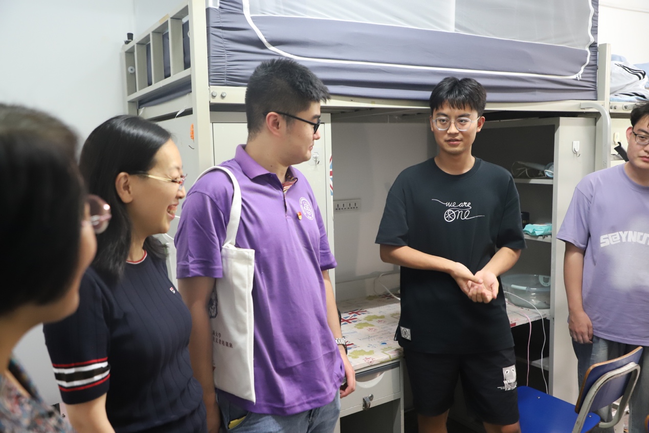 傍晚,皇冠网址 党委项洁书记、刘冰副书记走访了新生宿舍,慰问新生,了解他们的入住情况,为同学们送上真诚的关心和祝福。