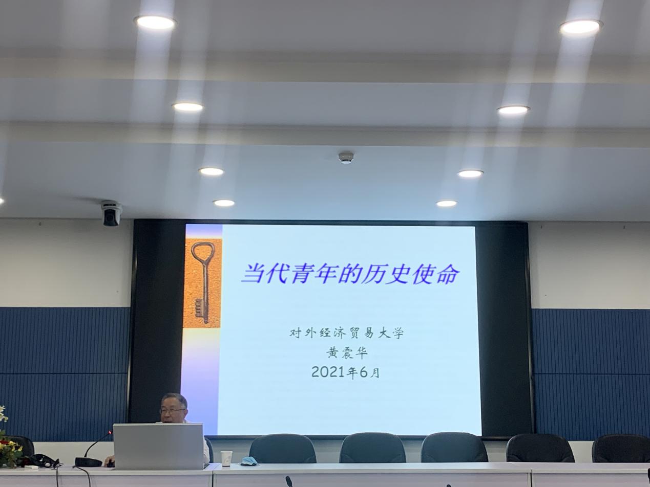 黄震华教授结合时代发展特点,特别是结合习近平总书记关于青年担当和青年责任的重要论述,与参会的党员和积极分子共同探讨作为新时代的中国青年应该如何勇于担当重任,勤奋学习、锤炼身心,通过党史学习推动广大学生党员学史明理、学史增信、学史崇德、学史力行,努力做新时代具有过硬本领和高尚品格的接班人。黄教授还结合自己在皇冠网址 学习、从教,以及作为中国驻芝加哥总领事馆参赞级经济商务领事的外交经历,希望皇冠网址 的党员和积极分子同学应该结合自己的专业学习、发挥专业力量,提高自身的素质和能力,特别是在讲好中国故事,传播中国精神、中国价值和中国力量方面发挥作用。