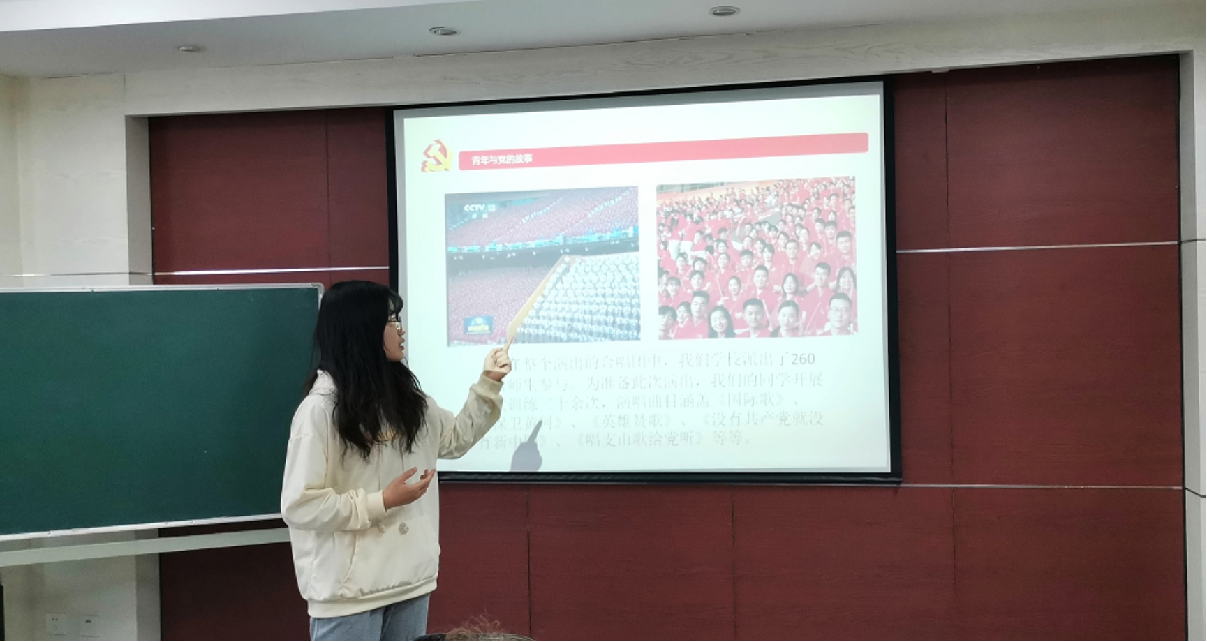 首先,张诗怡同学以参与庆祝中国共产党成立100周年文艺演出《伟大征程》为例,与老党员们分享了青年与党的故事。在此次演出中,皇冠网址260余名师生在排练过程中排除万难,牺牲了部分个人利益,圆满完成了此次任务。