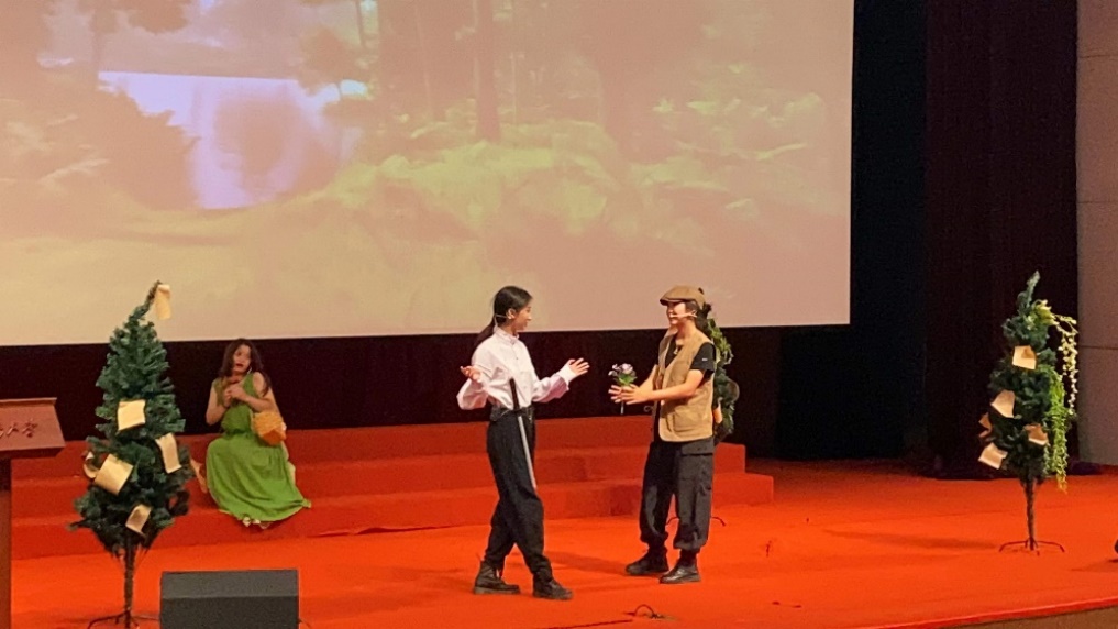 (一) 由19级樊星言、18级韩雨辰、李玥霞、张励共四位英语专业学生组成的As You Like It(《皆大欢喜》)剧组,成功入围首届“友邻杯”中国学生莎士比亚戏剧节大学生英语组决赛。